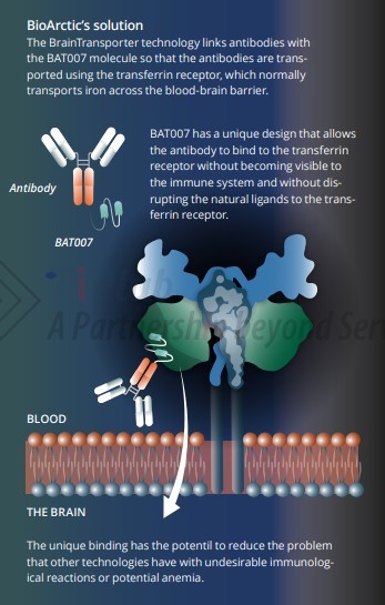 BrainTransporter 技术可以以不同的方式向大脑递送药物,并可用于许多不同的治疗领域,包括蛋白质、多肽、抗体、酶或RNA等,为 BioArctic 提供了许多潜在的合作机会。